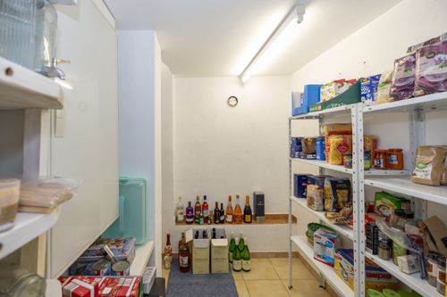 Im Untergeschoss befindet sich eine moderne Pelletheizung aus dem Jahr 2021, die bequem per App steuerbar ist. Ergänzt wird das nachhaltige Energiekonzept durch eine Solaranlage zur Warmwasseraufbereitung auf dem Dach. Darüber hinaus stehen eine praktische Waschküche sowie ein großzügiger Speise- bzw. Vorratsraum zur Verfügung. Die Räume sind pflegeleicht gefliest.